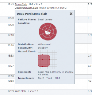 - We turned the avalanche problem label itself into a hyperlink. Clicking on this hyperlink opens a pop-up window that contains all of the detailed information about this avalanche problem. This is the same information that is shown in the avalanche problem table.