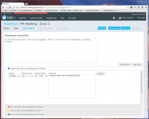 NOTE If you have multiple workflows for a location (e.g., AM and PM meetings), the information is pre-populated from the last time you submitted any workflow for the location. For example, in a regular rotation, the snowpack step in the PM meeting is pre-populated with information from the AM meeting and the next AM meeting is pre-populated with information from the PM meeting of the previous day.